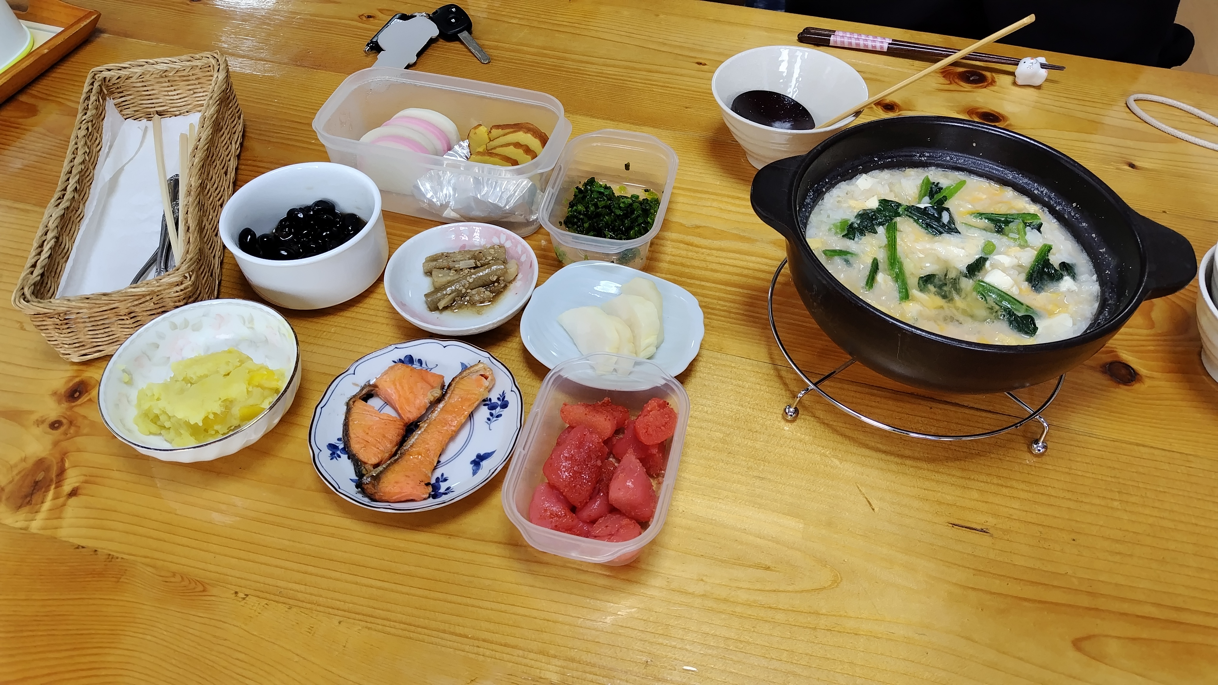 穏やかで・・・・マンプクな新年を迎えておりますかずまる@でございます(*‘ω‘ *)旧年中は大変お世話になり、まことにありがとうございました!本年も一層のご厚誼を賜ります様、お願いを申し上げますm(__)m一年の計は元旦にあり・・・2025元日の今日、盛岡は、最高気温3.8℃、最低気温は-1.4℃と暖かい元日となりました元旦のはじまりは・・・雑煮です(^_^)「はらこ買うの忘れちゃったの~~~」って母・・・「いえ、いいですよ~~(私は無い方がw)」ってニョーボが言う会話が台所で交わされてるのが聞こえ・・・イクラのナイ雑煮でしたん(*´з`)でも・・・いいんです!イ~~~んです!母のこの雑煮が、正月いちばんのワタシの楽しみなんですから!そして、この雑煮を【日本人の原点】と思っているワタシですd( ̄  ̄)(アンタの原点なだけだべ?)ニョーボが夕べ遅くまで掛かって下ごしらえして、今朝も早起きして、おこわを炊いたり、海老を揚げたりチキンカツを揚げたり・・・それを重箱に詰めてってやってくれて・・・【長男の嫁】なニョーボにも感謝です(^-^)実家の母のところへ行って・・・お重を拡げました。当家の雑煮の食べ方・・・雑煮に入ってる餅は、もちろんそのままでも食べますが添えてある小鉢に、雑煮の汁から引っ張り上げた餅を取り出しまして納豆を和えたり、ごまやクルミに和えたりして、雑煮とはまた別に頂くのも楽しみなんです。今年の雑煮も・・・完璧に美味しいなぁ~~~(^_^)ってやってたら?ムスメからLINEでおせち画像が(゚◇゚;)コレ・・・すごっっ!あのムスメは・・・やるとなったら、徹底的に極めるヤツなんですよねw母の作品を凌駕してますね(^_^;)コレを持って・・・旦那様の実家へ行くようです(^_^)(彼女も・・・長男の嫁です)母の特製おでんも美味いんですよ~~~雑煮とおせちで膨れたハラをさすりつつ・・・実家のカントクから依頼されて・・・ナイですが(^_^;)仏間の古びた蛍光灯を・・・(カバーは取り外してあったんですけど)ウチから持ってきたシーリングライトに交換し(蛍光灯ですが)この隣が母の寝室で・・・昨日は「明日1月1日到着」ってなってたAmazonは大ウソつきで今日注文履歴を見ると?「明日1月2日着」に変わってるwww最初から2日なら2日って言ったら良いじゃねえかよっ!・・・って元旦ですのでオンビソに行きましょうw「床暖房の不凍液が減ってるから足して欲しい」って母に頼まれたんで不凍液を200㏄ほど足しまして完了!このボイラーの電源を取っている屋外コンセントの取付けビスが錆びて折れて・・・コンセントがブラ~~~ん(>_<)ってなってるのを母が見つけて、修正依頼・・・ハイ・・・いったん取り外して離れたところに振動ドリルで穴を空けコンクリートビスを打ち込んで終了!こんなのカンタンじゃぁ~~~んd( ̄  ̄)って・・・いちばん大変だったのは・・・コンセントが抜けなくて(>_<)カチッと挿して、カチっと廻してロック・・・なんですがロックを解除しても・・・ぬ、・・・ぬ、抜けねえ~~~~って、20分ぐらい格闘して寒い中、汗かいちゃいましたw作業を終え初詣に昼過ぎに出掛けまして当家が詣でるのはマイドな桜山神社です。今回は・・・トロを連れて行って駐車場のクルマの中で留守番させてたのでいつもの喫茶店【リーベ】さんには寄れませんでした。まっすぐ帰宅して(^_^)母が・・・「あら?電源が入らないわね??」っていうのは・・・床暖房のボイラーのリモコンw『え?なんで??ちゃんとコンセント挿してあるけど??』・・・道具を片づけるとこういうことが起こるモンなんですよw機械屋の世界・・・外に出て、もう一回コンセントをバラして接続を確認したり、コンセントのプラグを磨いてみたり、延長コードで、違うコンセントから電源を引っ張ったりしてみたんですが、復帰せず(>_<)テスターが無いので、ホントに100が来てるかどうかわからないので・・・自宅にはオモチャのテスターがあるんですが・・・ワタシは、自宅へ戻る際は、手持ちの(仕事で使ってる)工具箱ひとつを自家用車に積み替えて持って来るんですが・・・今回はテスターは持って来ていなかったんです。ソレが無くても、用が足りるテスターは自宅にあるんですけど・・・実家に行くのに持って行かなかったんですよね。まさか・・・一般人がテスター持ち歩かないですからね?(^_^;)明日でも、もう一度診に行こうと思います。朝がゆっくりだったのと、たらふく食べたのでお昼はナシだったので(^_^;)17:30頃にまた・・・・美味い雑煮とおでんとおせちを戴いて今夜は18:30頃に自宅へ戻りました。昨日の紅白の感想をひとつだけ坂本冬美が被災地から「御陣乗太鼓」の保存会の人々と共演しましたね?最初、鬼の面を着けた保存会の方々の演舞が素晴らしいなぁ~~って思いながら視ていましたが・・・太鼓を叩かないで、間奏を聴いているとき・・・坂本冬美がゆっくり被災者の方々の方へ歩いて行く様を、彼らが見ながら・・・その瞬間の鬼の面々の表情が、仕草が・・・素晴らしかった!フ