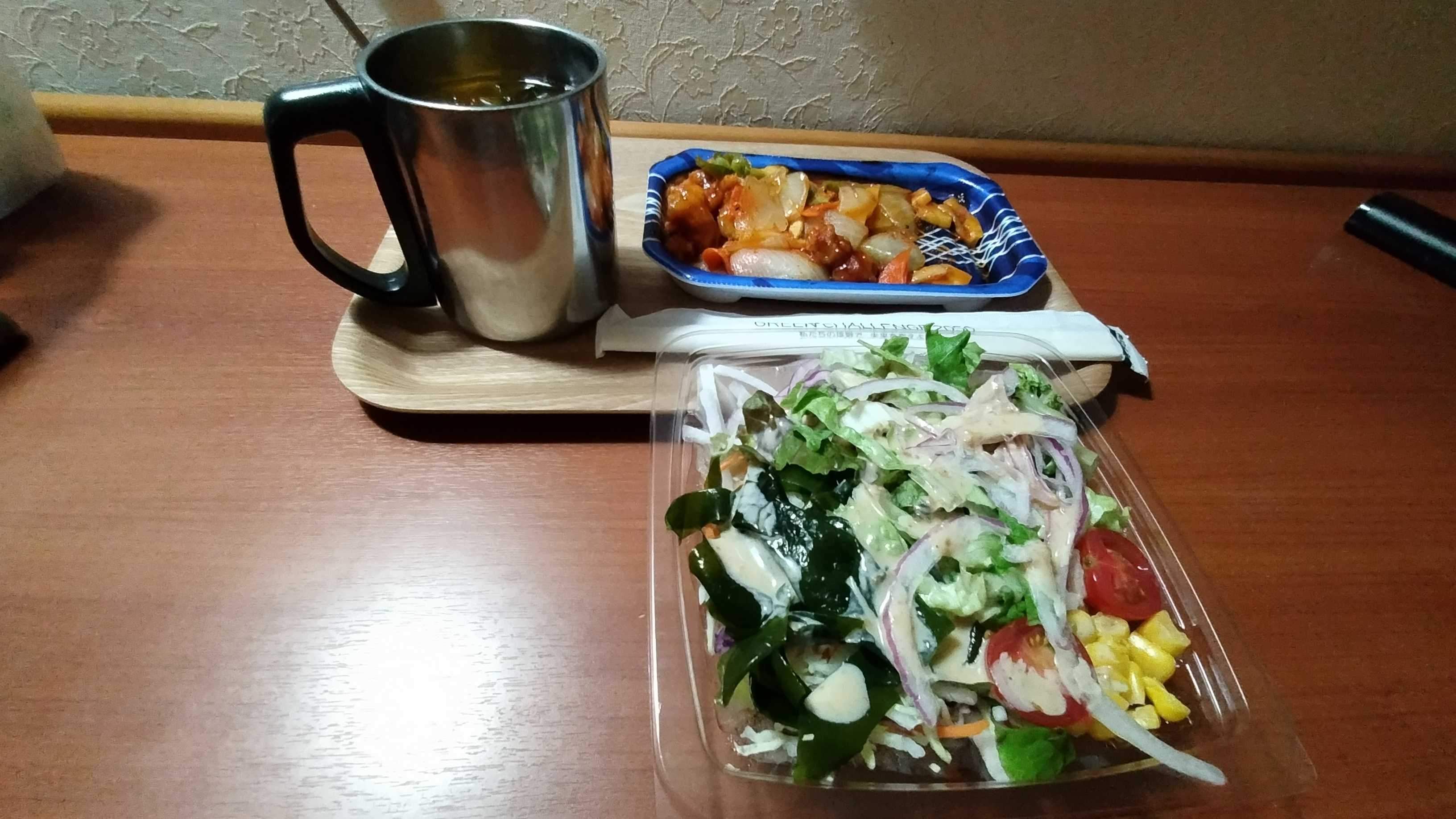 通り道のスーパーで買ってきたサラダと酢豚でw