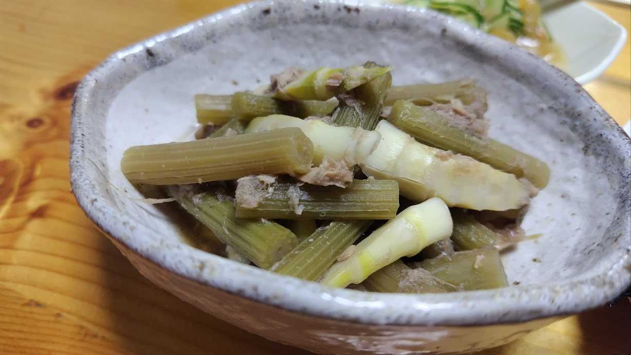 ニョーボは早速・・・天然のフキを調理してくれww