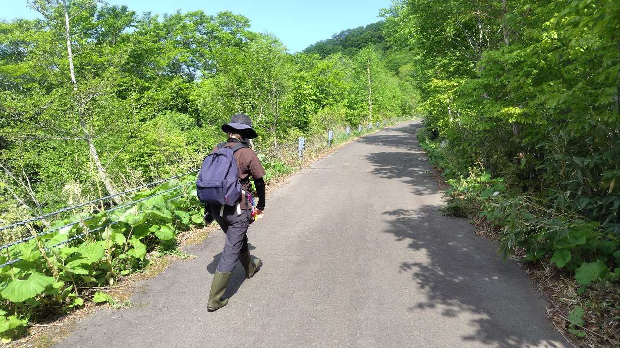 この林道は、通称【奧産道】・・・コレを25分歩いて、タケノコバイパス(謎)まで行きます。
