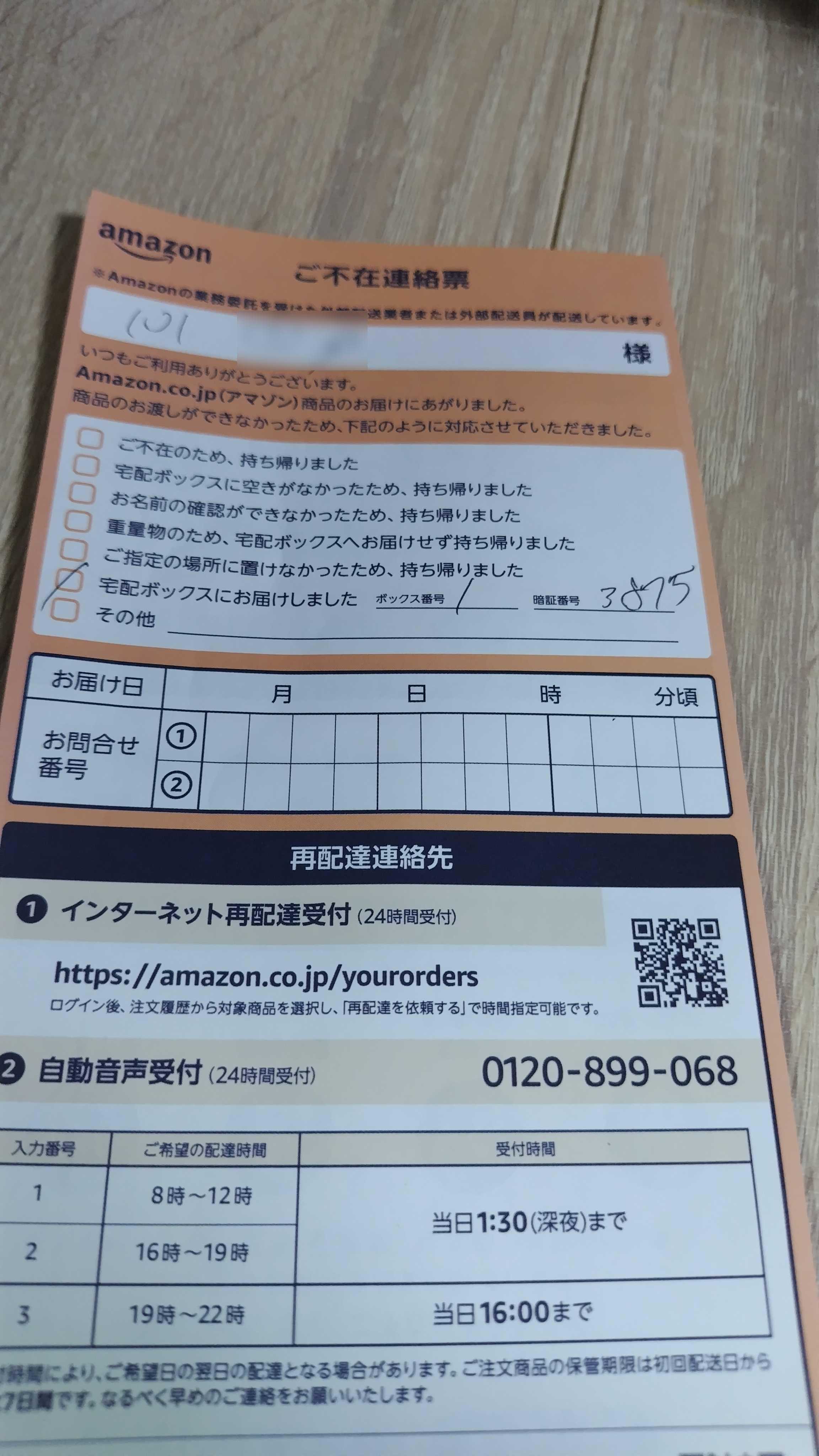 玄関前に置き配にしろって言ってんだろ~~!なんて宅配ボックスに入れるかなぁ?そして暗証番号間違うし!