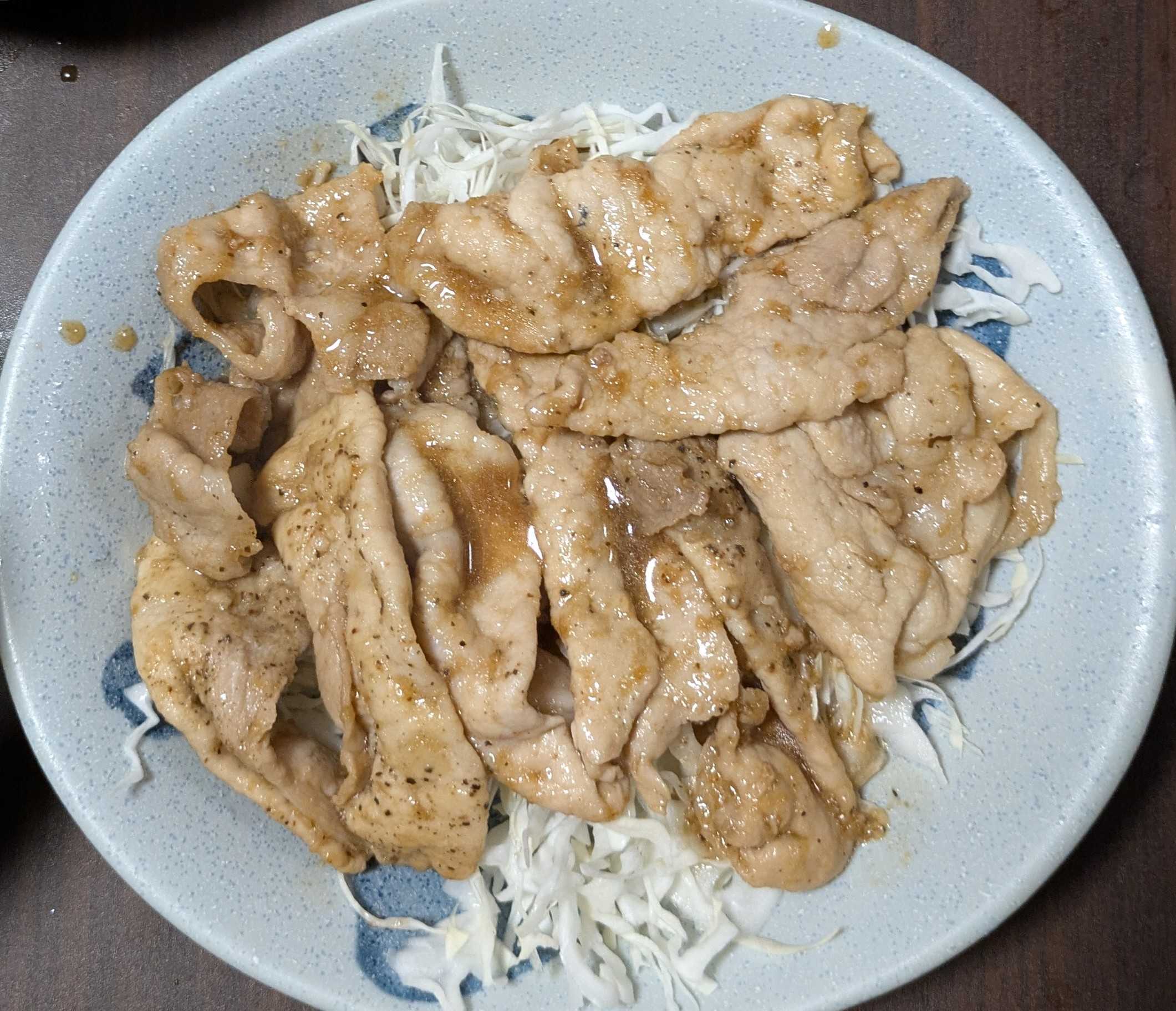 男料理(夕食)豚肉の生姜焼き 豚肉が柔らかくて美味しかった 男料理(夕…