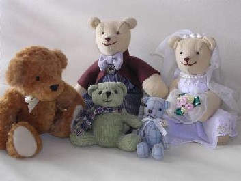 先日宣言したクマ作り。ようやく型紙通りに布を切り終わり、縫い始めました。縫い始めて、やっと楽しくなってきた。写真は、以前から我が家にいるクマたち。ここに、手作りのクマが加わるのね~♪