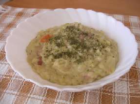 昨日、クリームパスタにしても、まだ残っていたスープを使って、リゾット風にしてみました。スープにお米を加え、焦げ付かないようによくまぜながら、15分くらい煮込みます。(お好みのお米のかたさになるまで・・・)最後に、チーズを加えて、完成~。これで、ようやくスープもなくなりました。今回はいろいろ使い回せたけど、昨日のパスタが一番美味しかった