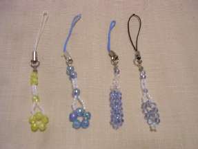 引き篭もり&夜更かしの産物です。携帯ストラップと、ブレスレットができました。。。複雑なものを作るのは、頭がいたくなるのでできません。簡単なものばかり作ってました。最近、やる気が起きないから、簡単なのに完成までに時間がかかります。それでも、何かをやっていないと、余計なこと考えちゃうから、いろいろ作ってみて、なんとか気晴らしをしようとしています。百円SHOPのキットを買ったのだけど、作り方通りじゃなくて、少し変えてしまいました。色の合わせ方の参考には、キットも便利~。