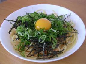 結婚前に一人暮らししていた頃、近くにとても美味しいパスタ屋さんがありましたおしゃれなお店ではなく、昔からある喫茶店風。夫婦でやっていて、威勢のよい奥さんが接客をしてました。そこのお店は、たらこパスタのメニューが豊富で、その中の「和風たらカルボ」が私のお気に入りでした。彼も気に入ってくれたメニューです。で、何だか急に食べたくなり、それらしきものを作ってみました。明太子ソースを自分で作るのが面倒なので、生タイプの「明太子パスタソースの素」を使いました。ゆでたパスタに、明太子パスタソースの素と醤油を少々かけて混ぜ、刻んだ海苔とねぎをたっぷりかけて、最後に卵黄をのせました。卵黄をつぶしてよく混ぜてから食べます。味は。。。こんな感じだったかな???随分食べにいってないから、お店の味は忘れてしまったでも、これは美味しかったです明太子ソースだと少し辛いから、たらこパスタソースを使ったほうがいいのかな?