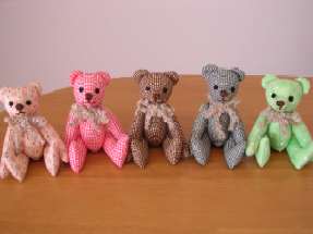 手のひらサイズクマさん、いつの間にかこんなに増えました。それぞれ顔が違います。同じ顔を作るのは、ムリなのね。。。どの子がいちばんかわいいかしら・・・?