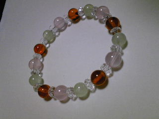 私の旦那さんの仕事関係のお友達の奥様にご注文をいただいて作ったストーンブレスです。愛情運・家庭運・健康運でグリーンとピンクが好きなこともご希望されたので迷わず作ったのがこれです^^そうしたら金運や仕事運までよくなる組み合わせになった(●^艸^)あれから2ヶ月、奥様からお電話をいただき嬉しいご報告をしていただけましたのでご紹介します(*´∇`*)プレナイトの宝石言葉(透明黄緑色) 健康美プレナイトの効果プレナイトは真実を見抜く石と呼ばれ、この石に触れながら人と接すると、その人の本質を見抜く事ができると言われる。また、思考を明瞭にし、直観力、判断力を高め、多くの情報の中から、真実のものを見極める力を与えてくれるので、選択に迷っている時に効果的。精神面、現実面において自分にとって不要なものを見分ける手助けをしてくれる。感情と理性のバランス保ち、頭脳明晰にしてくれ、しっかりとした意志と信念を貫かせてくれる。忍耐力や根気強さ、意志の強さを高めるため、仕事や勉強を向上させたい人にお勧め。優しいプラスのエネルギーを与え、忍耐力を養うので、周りとの協調や調和を生み、環境をよりよい方向へ導く。精神を穏やかにしてストレスを緩和し、怒りや憤りを静めて、緊張を和らげ、癒しをもたらす。無償の愛、無条件の愛を持たせるのに役立つ。 また、プレナイトは健康の美しさを教えてくれる石とも言われ、持ち主の不調を癒す効果がある。プレナイトの体の症状への効果 膀胱、膵臓、胆嚢アンバーの宝石言葉(あめ色透明) 抱擁、大きな愛、誰よりも優しく、家族の繁栄・長寿、家長の威厳、帝王アンバーの効果アンバーは精神を安定させる効果があると伝えられています。また、感情が高ぶってしまった時に指で軽く擦ると、心を静め落ち着かせてくれる。アンバーは太陽のエネルギーを含み、元気のない時に身につけると生命力が高まり、気力が沸いてくる。過去の恐怖心や罪意識を楽にしてくれ、不安や絶望感を追い払い、生きる喜びを与える。アンバーをこすると静電気を帯びる帯電効果があることから良い気を引き付けるとされ、金運、仕事運、人気運が良くなると言われる。アンバーの代表的な色である黄色はコミュニケーションの色と言われ、内気な性格を防ぐとも言われる。また、邪気を払う効果もあるとされ、アンバーを子供が持つと悪霊や災、病気から守り、大人が持てば健康と長寿につながるとされている。ヨーロッパでは、アンバーをプレゼントする事は「幸運を贈る」という意味を持ち、積年の愛が花咲くと言われ、英国では結婚10年目にアンバー(こはく)を贈る「琥珀(こはく)婚」という風習がある。虫入り琥珀は特に縁起が良いとされ、強い運を引き付ける効果がある。東洋では古くから薬として使用されている。いつも指でこする用にすると良い。*注意点 シルバーとの相性は良くない。アンバーの体の症状への効果 伝染病、喉、流産、肝臓、腎臓、気管支、胃、皮膚、解毒、目眩、下痢、関節炎、頭痛、歯痛、リューマチ、副腎、アレルギー症、流産防止ローズクォーツの宝石言葉(ピンク色) 愛を伝える、平和、感情の支えローズクォーツの効果ローズクォーツは、鉄より硬く衝撃にも強い性質から、真実の愛、永遠の愛を象徴し、恋愛、家族の愛、友人への愛、物や仕事への愛、母性愛など、あらゆる愛の石と呼ばれる。特に恋愛に対しては効果が高く、片思い、出会い、良縁、結婚などに効果的。自分を愛することで、すべての人に限りない愛を向けることができるようになる。自分を許し慈しみ、内面へむけての愛をはぐくむ事ができるようになる。女性ホルモンを活性化させ、美しさ、肌のハリ、みずみずしい若さを保ち、しわを減らすなど、美容、アンチエイジングに効果的。優しさや柔らかさを与え、女性らしい魅力を身に付けさせ、自信を高める。美的感覚を養うので、クリエイティブな仕事をしている方にもお勧め。持つ人を穏やかで優しい気持ちにさせ、疲れた心を癒し、悲しみや孤独、失恋などで傷ついた心、トラウマ、自分に対するマイナスな感情などを優しくなだめてくれ、ネガティブになりやすい人やトラウマを持った人にもお勧め。発色が美しく透明度が高いものは特にヒーリングに効果的。マダガスカルローズクォーツが最強と言われる。*おすすめの使用法 胸元に付けるとさらに効果的。 毎日直接肌に触れさせるのが良い。体の症状への効果 ホルモンバランス、骨の病気、ぜんそく、外傷、内分泌系、咳、冷え性、美肌、新陳代謝水晶(クリスタル)の効果 (透明色)クリスタルはあらゆる面での最大の浄化力を持ち、すべてに対しての調和を生む。特にクリスタル原石は浄化力が最大と言われ、置いた場所を浄化し、正しいエネルギーへと調和し、均衡を保つ。クリスタルの魔除けのパワーは強力で、悪い気から守ってくれる。悪いエネルギーをはね除け、感情的な心をコントロールして精神を安