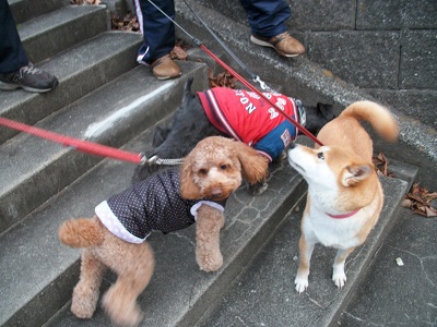まりも君 今朝も寄ってくれました 今朝のおやつは りんご でした 私から2切れ 飼い主さんから1きれもらいました まりも君 公園を通って帰る時 ロン君 ハナちゃんがやってきました ロン君・ハナちゃんに会うのは久しぶりです まりも君も喜んで いっとき いっしょに遊んでいました 今朝も朝のうちに散歩しました 今日は朝の方が気温が高かった感じです 散歩のときは寒くなかったです 午後から雪が舞ってきました 今日 一日家にいました 勉強いくらかしました 今日も いい 一日になりました 大相撲 稀勢の里 2敗になりましたね