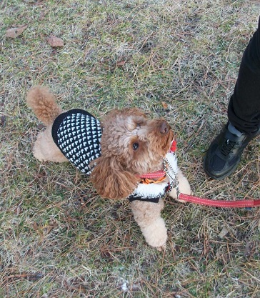 まりも君 今朝も寄ってくれました 今朝も寒い朝になりました 今朝のおやつは リンゴでした 私から2切れ 飼い主さんから1切れ あたえました まりも君 帰る時 知り合いの高齢の方と会いました その方からも おやつもらいました まりも君 その方と一緒に 公園を通って帰っていきました 今日 午前 久しぶりに買い物にいきました イオン 開いたばかりで混んでいませんでした 今度 生協から 夕飯のおかず とりますから 買い物は半分になりました それでも 買い物袋いっぱいでになりました 今日はいい天気になりました でも 寒い一日でした 散歩 今日も公園を7周しました