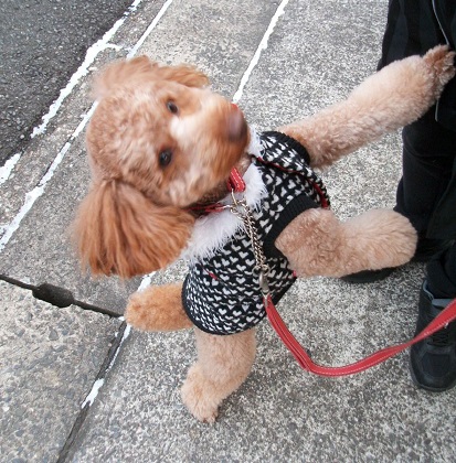 まりも君 今朝も寄ってくれましてた 今朝も寒かったです この冬一番とか まりも君 昨日 美容院に行ってきたそうです きれいになりました 写真でも分かります 今朝のおやつは リンゴ でした 私から2切れ 飼い主さんから1切れもらいました きれいになった まりも君をなで なでしてやりました 今朝も公園を通って帰っていきました 今日 午後 歯科医院に定期健診で行ってきました 気になるところもみてもらいました 歯を掃除したら 気持ちいいです よかったです 小女帰る 犬の散歩で行方不明になった小女 見つかったとの 朝のニュスを聞いて 涙が止まりませんでした 良かったです 今日は 日中 いくらか気温上がりました 今日は 歯科医院にいったら 一日 終わった感じです