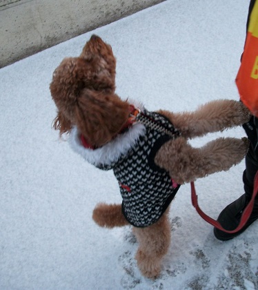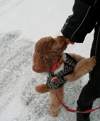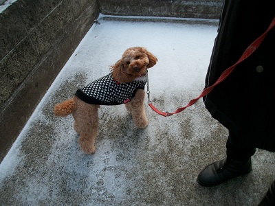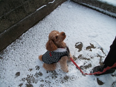 まりも君 今朝も寄ってくれました 今朝も寒い朝でした まりも君も寒くて 重ね着です おやつ りんご を私から3切れ 飼い主さんから1切れあたえました まりも君も寒くて 来て直ぐ帰っていきました 今朝は公園を通ってかえりました 写真 昨夜降った雪です 今朝は足跡のないところを まりも君やってきました 今日も一日 家にいました 明日は買い物にでかけます 今日もいくらか勉強しました 本田選手 昨日 デビューしたのですね すこい人気ですね 稀勢の里 昨日 初日 黒星発進ですね塗