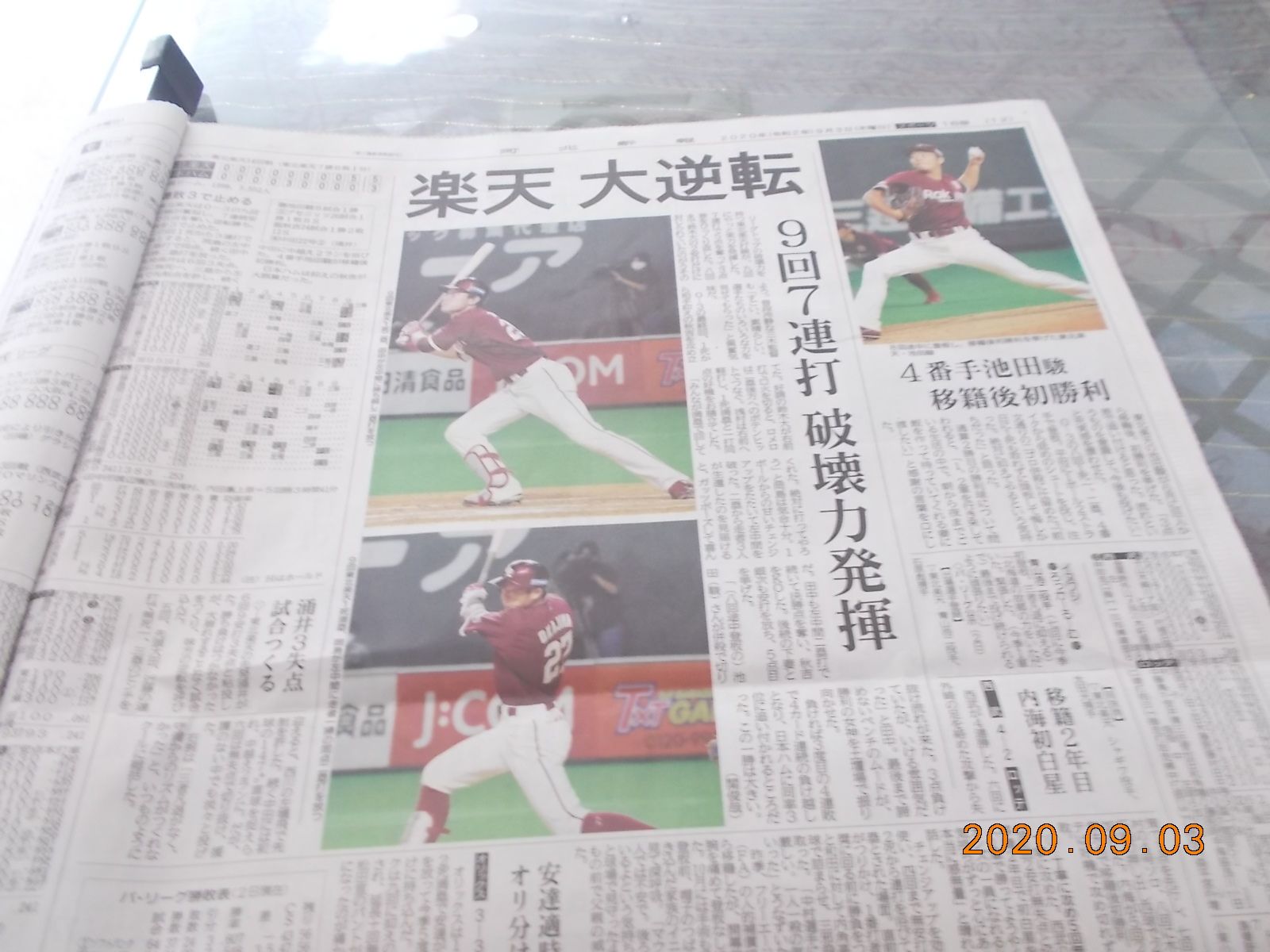 家にいました 隣のコンビニにも出ませんでしたプロ野球 樂天 昨夜の大逆転の新聞記事 写真撮りました写真は 大逆転の記事です