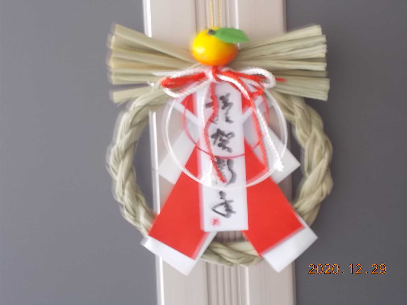午後 構内を散歩しました そのあとでこんびにで年賀葉書かいました5枚かいました写真知りました私の部屋のドアに しめ縄飾りました