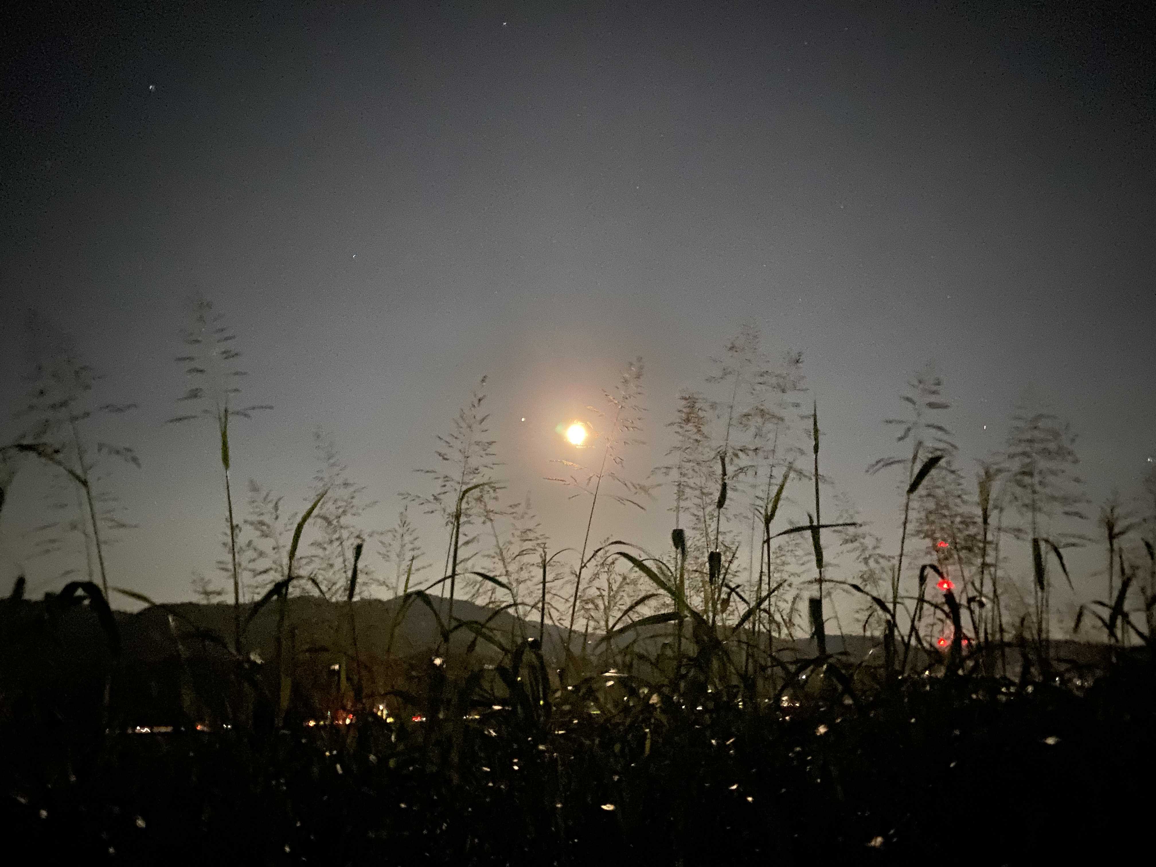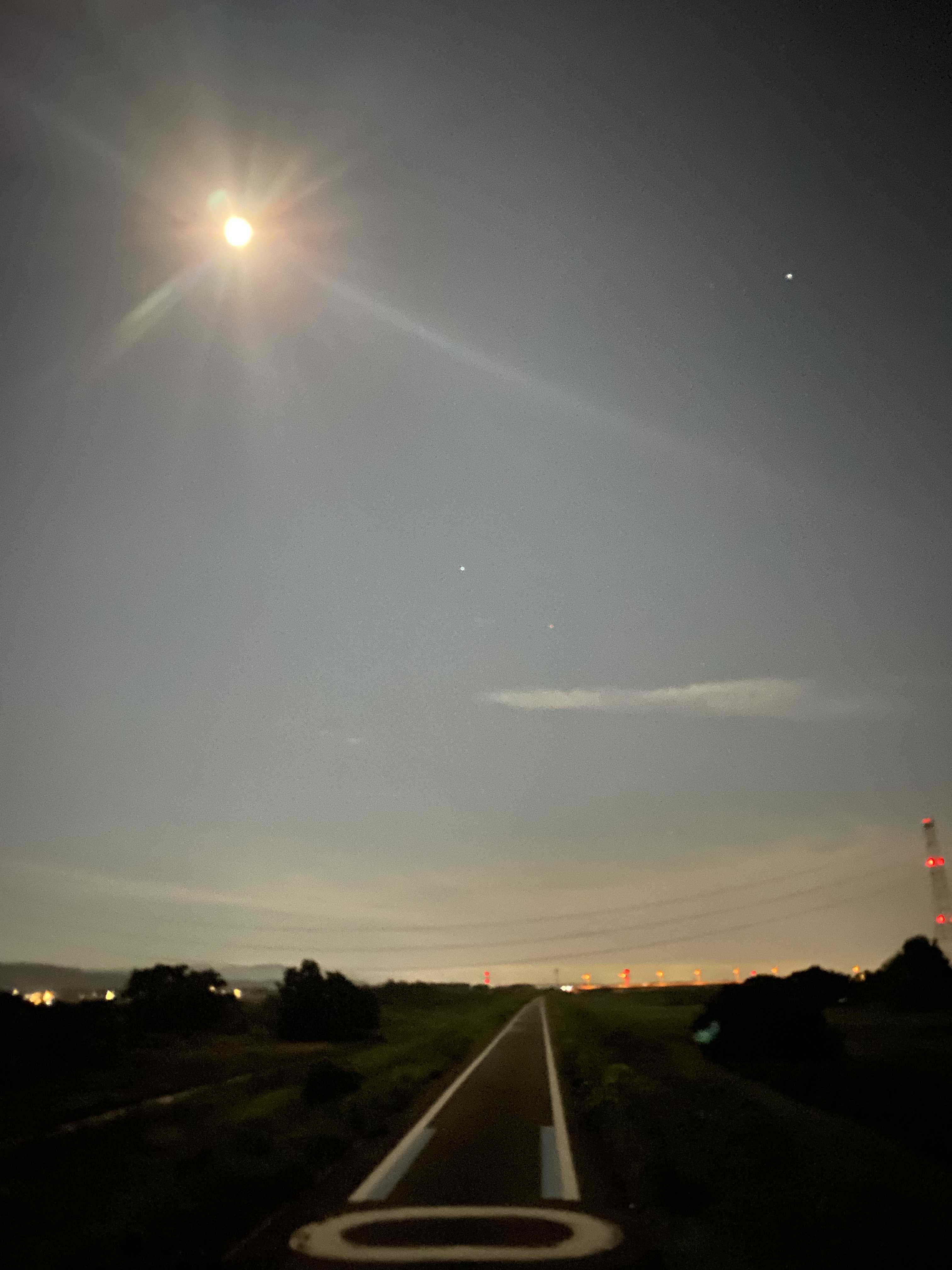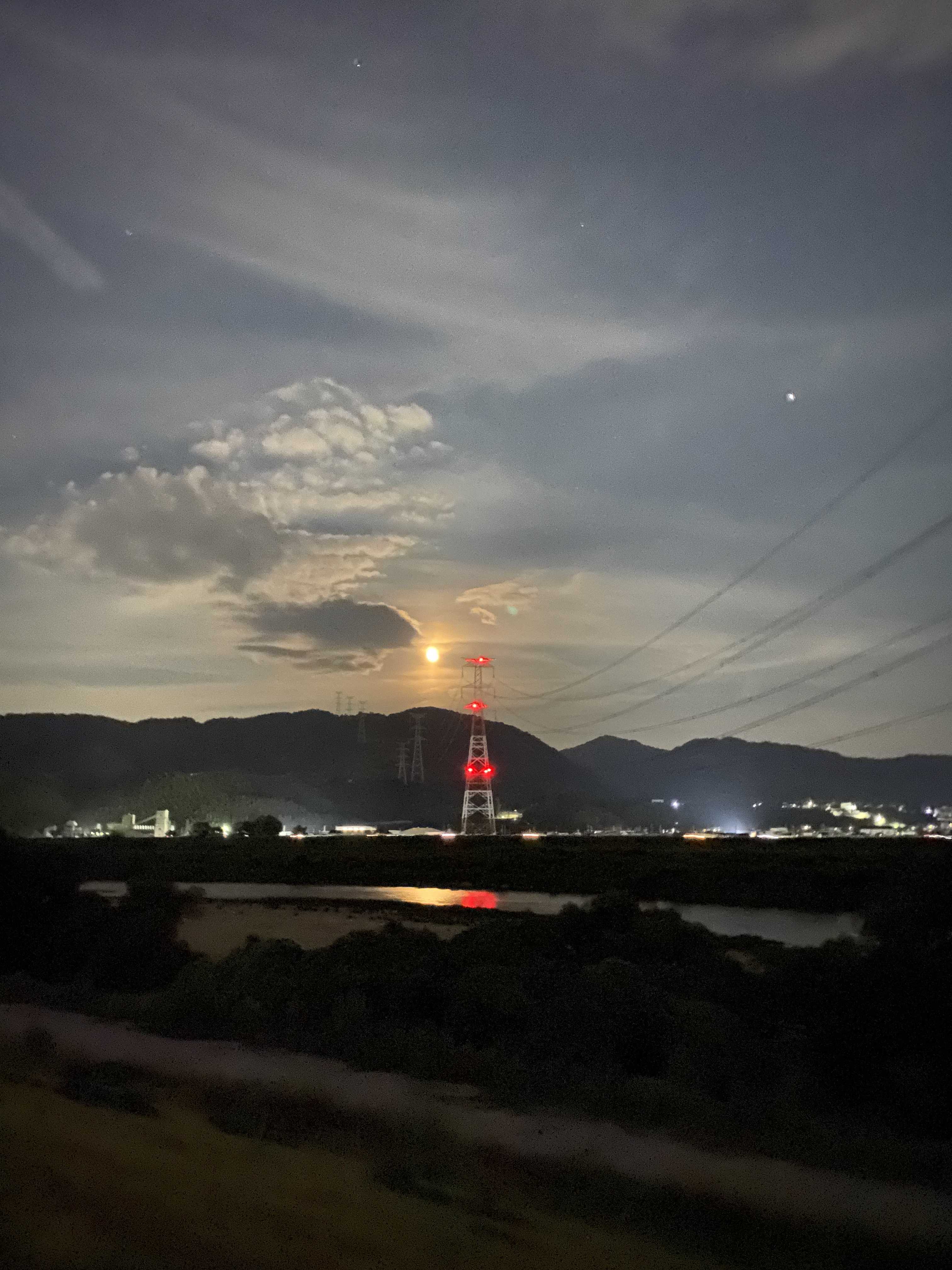 いつも、堤防を歩いてます。いつも夜歩いてて、周り真っ暗ですが、この3日間ぐらいは、ずっと明るかった。また、違う感じでよかったです。👍