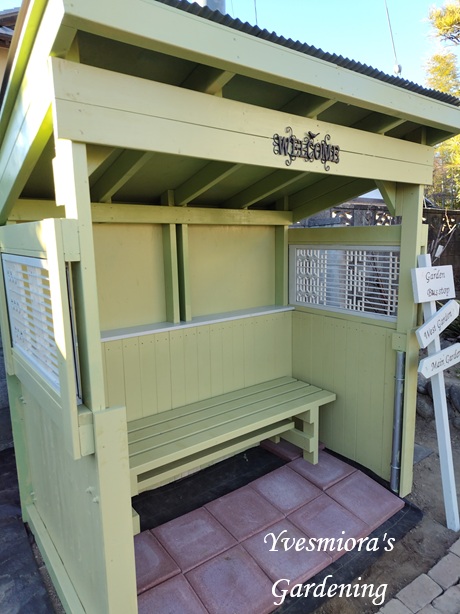 明けましておめでとうございます。今年も、よろしくお願いいたします。ガーデンバス停昨年暮れから、妹夫婦に作ってもらっている、ガーデンバス停が、今日完成しました。昨年28日に作ったところを、昨日ペイントしたことを、妹にメールすると、準備ができているので、明日行ってもいいよという話になり、今朝9時から作業に取り掛かり、午後2時半に完成しました。リフォームする前に使っていた建具を白くペイントして、窓に取り付けてもらいました。中に入れた長椅子のサイズは、25cm長くしてもらいました。暮れに作ってもらった長椅子は、他のところに置くつもりです。素敵なガーデンバス停が出来上がり、大満足です。これからサインボードをつけたり、レンガでコンテナ置き場を作ったりバス停内の飾りもつける予定です。最後までお読みくださって、ありがとうございます。ブログランキングに参加しています。ポチット押してくださると、ガーデニングの励みになります。にほんブログ村こちらのバラ園芸も、よろしくお願いします。にほんブログ村ありがとうございます。My home page.ホームページです。https://kuboniwagarden.jimdo.comCooking recipe私のオリジナル料理レシピhttps://recipe.rakuten.co.jp/mypage/1280000783/recipe/今日もお元気でお過ごしくださいね。