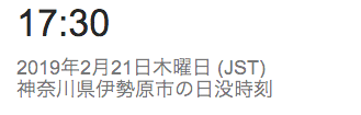 2/21 日の入りが17:30になっていました 2/21 日の出は6:20ぐらいです 日の入りが最も早かった12月初旬に比べ約1時間遅くなりました。日の出が最も遅かった1月初旬に比べ約30分早くなりました。合わせて昼間の時間が約1時間半ほど長くなりました。そろそろ冬も終りです。。