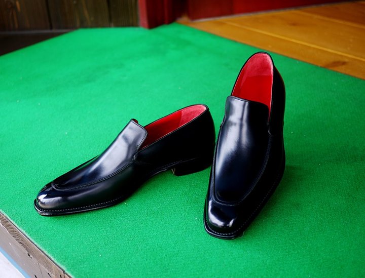 頼んでいたオーダーシューズができました♪革の種類、色、靴底、サイド、踵、靴底 等々、全て自分で選んでジャストサイズのものを創ってもらいました〜。なるべくシンプルなものが欲しかったので満足です。ポイントは中革を赤にしたことです^^以前、作った時はデザインの種類が少なく妥協しましたが、今回のお店はデザインが豊富なうえ、細かい部分もオーダーできるのでデザインを決めるのに約1時間要しました(汗)。末永く活躍してくれるでしょう♪