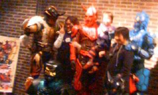 特別上映会でメリー★クライマックス !! そんな訳で12月23日に行われたイマジンと遊ぼうイベント・・・ いえ、撮影会付き上映会に行って参りました。 ちなみにレポートではなく覚えていることをポツポツ書いただけです(^^;) 入場の時にアンケートを配られたので、記入しつつ待っていると 司会のおねえさんに呼ばれて白倉Pと柴崎さんが登壇。 続いて「イマジンを代表してモモタロス」と言いつつも、ウラ キン リュウ デネブ も続々登場。 後部やサイドの扉から現れ、客席の通路でさらっとファンサービスしながら舞台へ。 歓声と黄色い声で場内割れんばかり。そしてシークレットゲストとしてジークも! それにしてもリュウタロスファンのパワー凄まじき。 リュウタロスだけに視線を注ぎ、リュウタロスの一挙手一投足に「かわいい~!」と絶叫していたような?! そんなリュウタロス信奉者の皆さんに圧倒されつつ質問コーナーに進行。 まずはおねえさんからの質問がいくつか。 確か「電王、イマジンの人気の理由は?」と訊いたら「この赤い鬼のお面に人気が出る訳がわからないなんて」ことを白倉さんが言っておられました。 やがてお客からの質問に応えるコーナーに。 ちびっ子たちは「モモタロスはどのくらい泳げるようになったの?」「侑斗は椎茸食べられれるようになったの?」とナイス質問。 モモタロスは今のところまだ殆ど泳げない様子。侑斗もまだシイタケ嫌いは治っていないという。 イマジン達とまた会えますか?という質問に何と答えたら良いか言葉を選びつつ、白倉さんんが 「ディケイドには電王も出ます。でもどういう形で出るかはまだ分からない」というような発言。 柴崎さんは「ファンの皆さん次第」と、まだ電王が表舞台を飾ることも無きにしも非ず・・・的表現で?! そんな質問コーナーの後はクイズコーナー。 6問のクイズに全問正解した人の中から5名がイマジン6人独り占めで写真撮影できるというもの。 ・モモタロスの嫌いな動物は? ・ウラタロスの変装用きぐるみの動物は? ・キンタロスの必殺技のキメ台詞について ・リュウタロスの名づけ人は? ・デネブは何のイマジン? ・ウイングフォームの武器はハンドアックスともうひとつ何? クイズで成人女性はジークの問題が分からない人が多かったようで 「ヒントだして」コールの合唱。 クイズの答案紙は回収され、クライマックス刑事上映中に集計されたとのこと。 熊親子、クイズは正解した筈ですが抽選からは漏れました。 撮影会はもうもう、押し合いへし合いでロビーは一時ちょっとしたパニックに。 スタッフの皆さん場内整理に奮闘されておりました。 興奮したファンの方々がイマジン達を近くで見ようと軽く突進。 ウチの子熊2号はライオンキングのヌーの群れに入り込んでしまったシンバのようになりかけました。 それはさておき、とにかく写真も撮らせていただきましたし、お土産まで頂戴してありがたかったです 今日は携帯の画像ですが・・・後日写るんですを現像すればもうちょっと鮮明な写真のはずです。 スタッフの方が撮ってくださったので。 子熊2号はモモタロスに抱っこされました! めでたしめでたし! ● T-joy 大泉 スタッフブログ ● 12月20日の日記