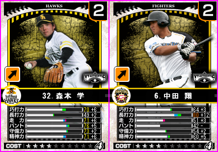 今日はMichael Jackson - Heal The Worldです♪これで2009年ラスト更新!それでは特に変わらずやきゅつく日記。まずは1ペナに留学出してた選手の紹介。森本は余ってたやきゅつくコインで年齢解除して留学出してみました。能力的には☆7ぐらいの選手になったんじゃないかな。チームカラーにも絡めるコスパ良い選手です。せっかくなんで契約延長使う予定。次に2ペナの順位。マジック点灯してました。今回は試合カード使わずに優勝できそうかな。次にオーダー。投手オーダーは全然変わってないので省略。野手オーダーはこんな感じに。森本は前半調子良かったんですが、ここ最近調子落ちてきたので井口にチェンジ。中田は打率低いけど、そこそこ本塁打と打点で稼いでるんで一応使ってます。最後に今回最も活躍している選手の紹介。いや~☆1で頑張りすぎ。スキルもサポートカードも何も貼っていないのにこの活躍wちなみに前回のペナントでも相当頑張ってました。さて、これで年内ラスト更新終わり。現在実家に帰省しているのでガキの使いでも見ながらまったりと年越しをしたいと思います。それじゃみなさんよいお年を~ノシ