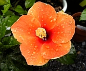 雨に濡れたハイビスカス、『プリン』です。↑&↓