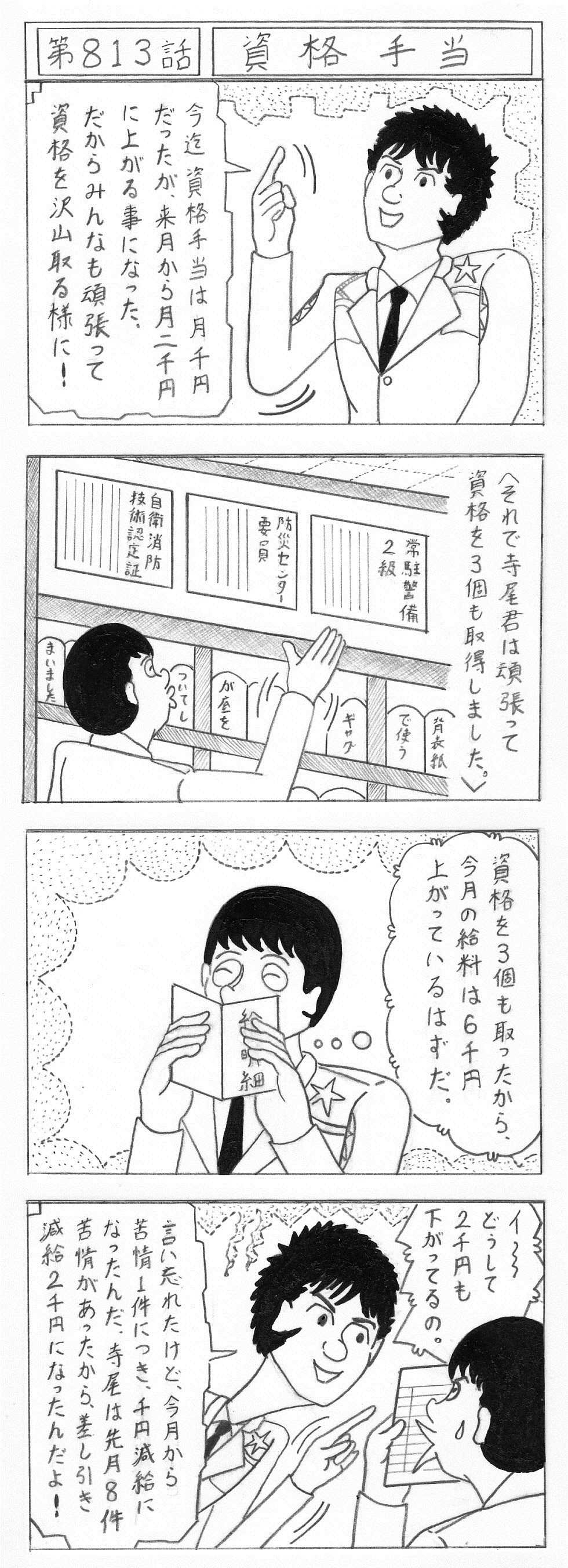 埼玉県川越市にあるテナントビル内の防災センターに勤務する、 警備隊長と部下の寺尾君が繰り広げる抱腹絶倒のとても面白い四コマ漫画です。