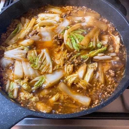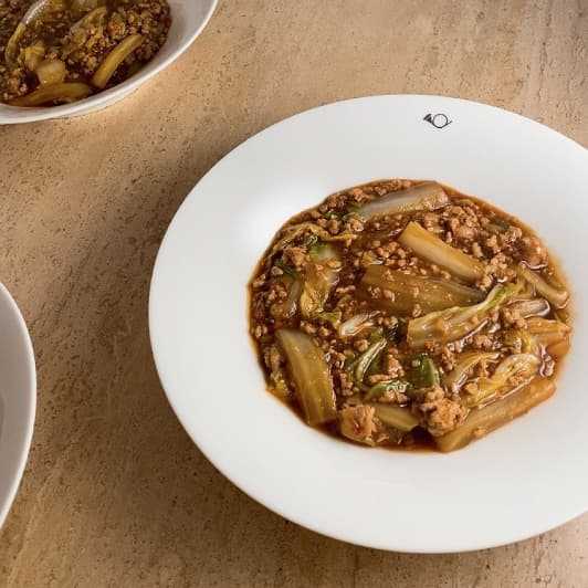 昨夜は冷凍庫のひき肉と野菜室にあった白菜で麻婆白菜。