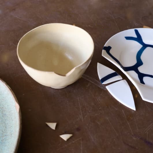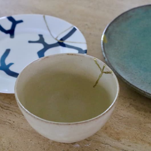 割れたり欠けたりした器を近所の​ 宮崎陶房 ​で金継ぎするのです。