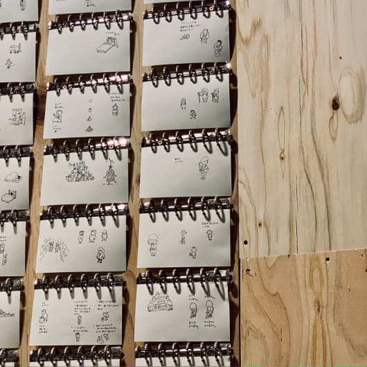 リング穴の開いた小さな紙にアイデアスケッチを描いてストックしているそうです。