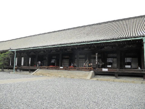 三十三間堂と京都博物館は七条通りを隔てて隣だけれど、博物館は工事中でどうやら閉館中のようで、三十三間堂そして東山七条の妙法院門跡続いては智積院金堂明王殿