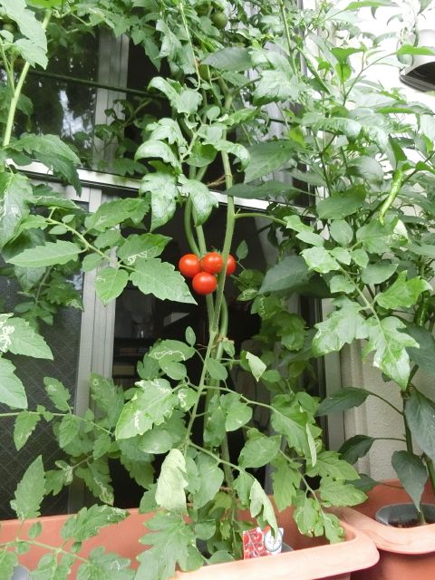 中玉トマトのフルティカが、ようやく初収穫の日を迎えましたいくつか色付いています同じような色に見えますが、中でも1番濃い実を収穫初収穫はこちらの実です中玉とはいえ、ちょっと小さめ・・・我が家で収穫できるお野菜たちはどれも標準より小さいんですよねぇさて、今日の収穫ですししとう13本、伏見甘長6本、千果2個、そして初収穫のフルティカ1個ですミニトマトの千果と比べると我が家のフルティカも案外大きく見えますね日本ブログ村ランキング&人気ブログランキングに参加しています。1日1回ポチっとクリック!&クリック!お願いします 励みになります