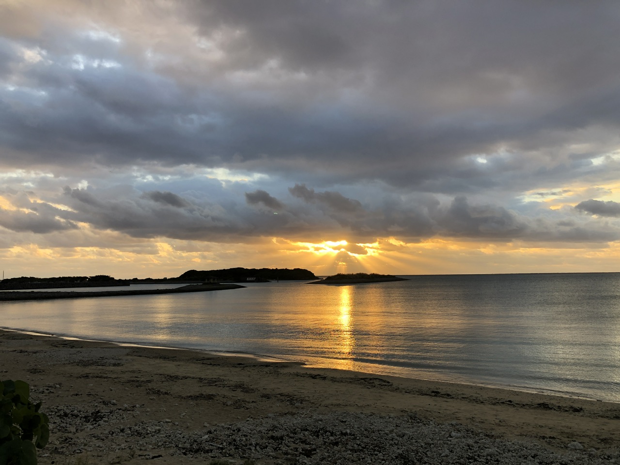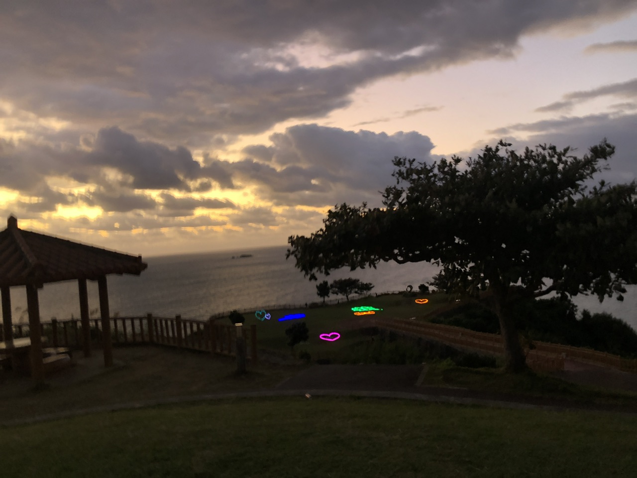 知念岬公園から臨む朝焼けの様子は、とても美しかったです。
