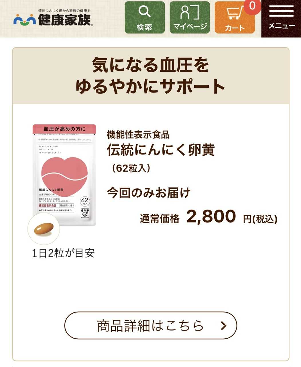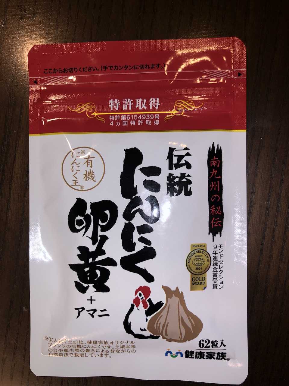通販番組でもお馴染みの健康家族が販売している、伝統にんにく卵黄というサプリメントです。