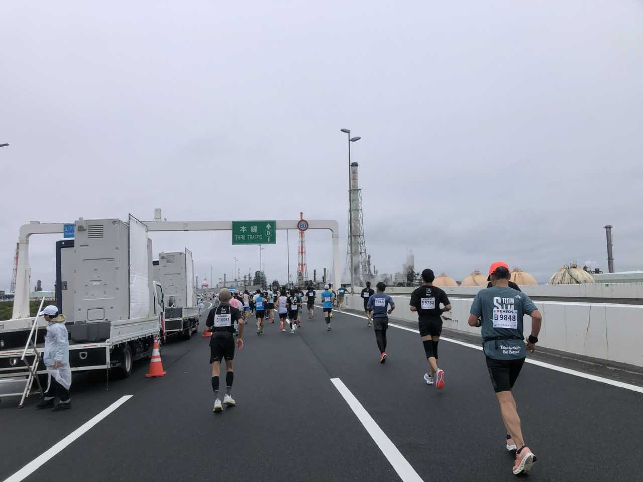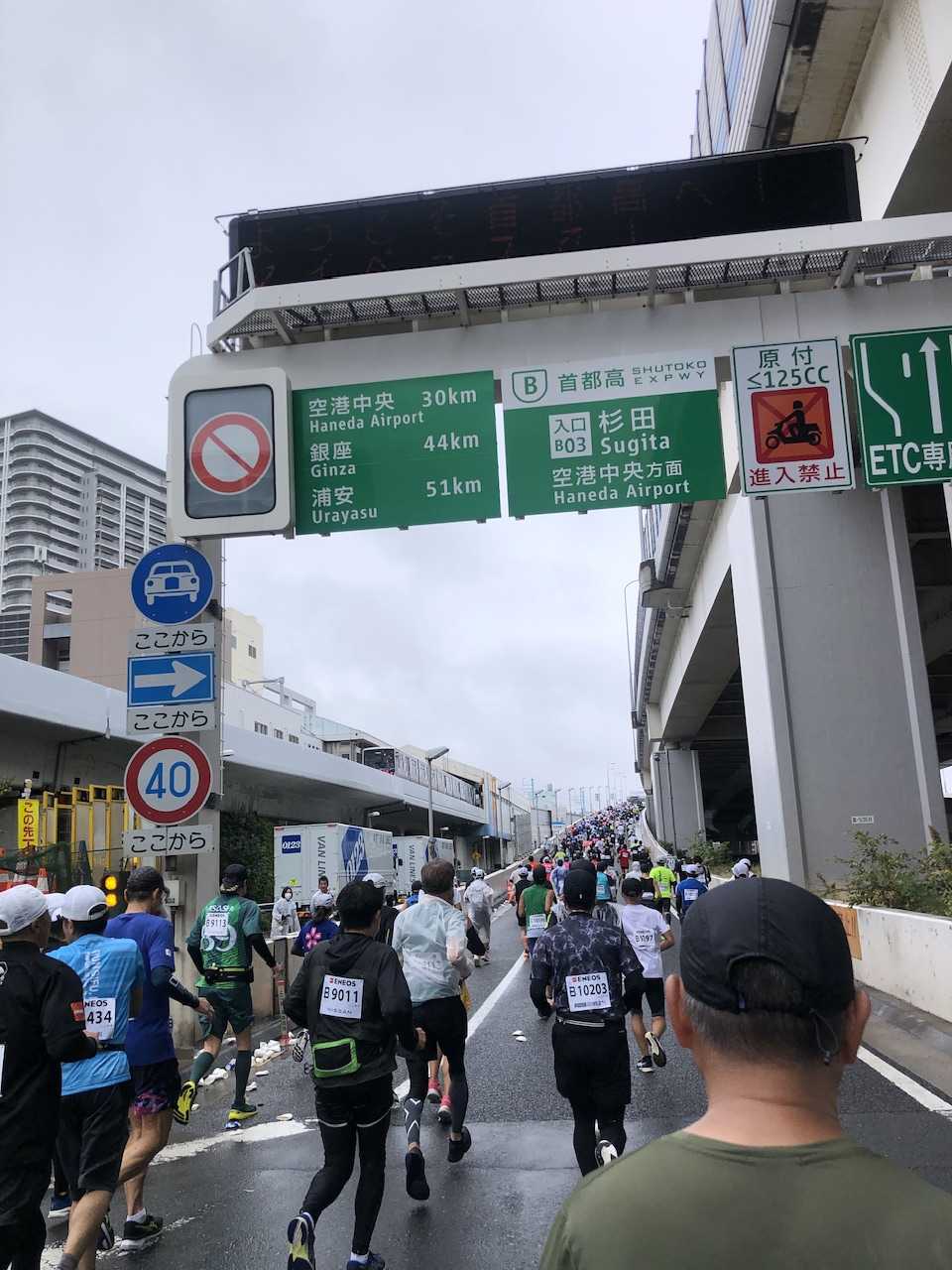昔は32kmほどの地点でしたが、今回は36kmまで首都高を走るコースでした。