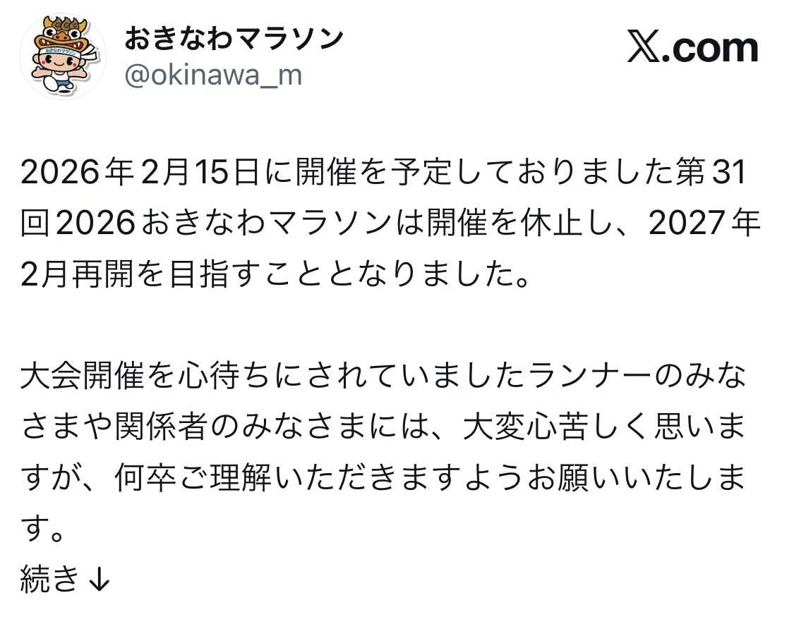 2月15日 に開催予定だった、第31回おきなわマラソンが休止になりました。