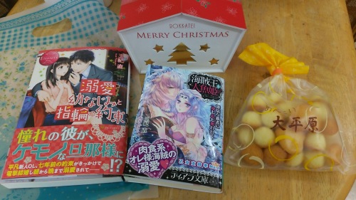 物書き仲間の玉紀直ちゃんから、書籍2冊いただきました!ありがとう~~玉ちゃん!!感激です!11月にティアラから出てる「海賊王と人魚姫」人魚姫がどうなるのか! なぜ海賊と?? 設定ナイスでした!うう、玉ちゃんの書くお話はあまぁいのよ~~~らぶらぶでおすすめですw【楽天ブックスならいつでも送料無料】海賊王と人魚姫 [ 玉紀直 ]価格:648円(税込、送料込)そして12月にエタニティから出た「溺愛幼なじみと指輪の約束」いつも「ケイさんと同じエタニティから出します」って言ってくれるんだけど(汗)わたしも「らぶ☆ダイエット」で久々だったのに、ありがたいです~これもまた甘いよ、きっと!!【楽天ブックスならいつでも送料無料】溺愛幼なじみと指輪の約束 [ 玉紀直 ]価格:1,296円(税込、送料込)読むのが楽しみです!(〆切終わってからのとっておき)そして……なんとクリスマスプレゼント付きでした!六花亭のクリスマス限定詰め合わせ~~なにこの美味しいの!六花亭といえばマルセイバターサンドですが六花亭の代表銘菓!六花亭 マルセイバターサンド 5個入り価格:630円(税込、送料別)これもつけてくれてましたwめんこい大平原六花亭のひと口サイズのマドレーヌ六花亭 めんこい大平原価格:360円(税込、送料別)これも入ってたしフリーズドライ苺をホワイトチョコで包みました六花亭 ストロベリーチョコ ホワイト価格:650円(税込、送料別)実はこれがメチャウマでした!キャラメル!サクッとしてもっと食べたくなる……これ、リピしますよ~~! まじで!テレビで紹介されました!クリーム、バター、大豆、チーズは十勝産を使用!六花亭 十勝で候 マ...価格:500円(税込、送料別)クリスマス限定だったので、同じのはもう買えないようですが似たやつ~マルセイバターサンドをはじめ、大平原、霜だたみなどの人気菓子を中心に詰め合わせ六花亭 詰め...価格:1,800円(税込、送料別)