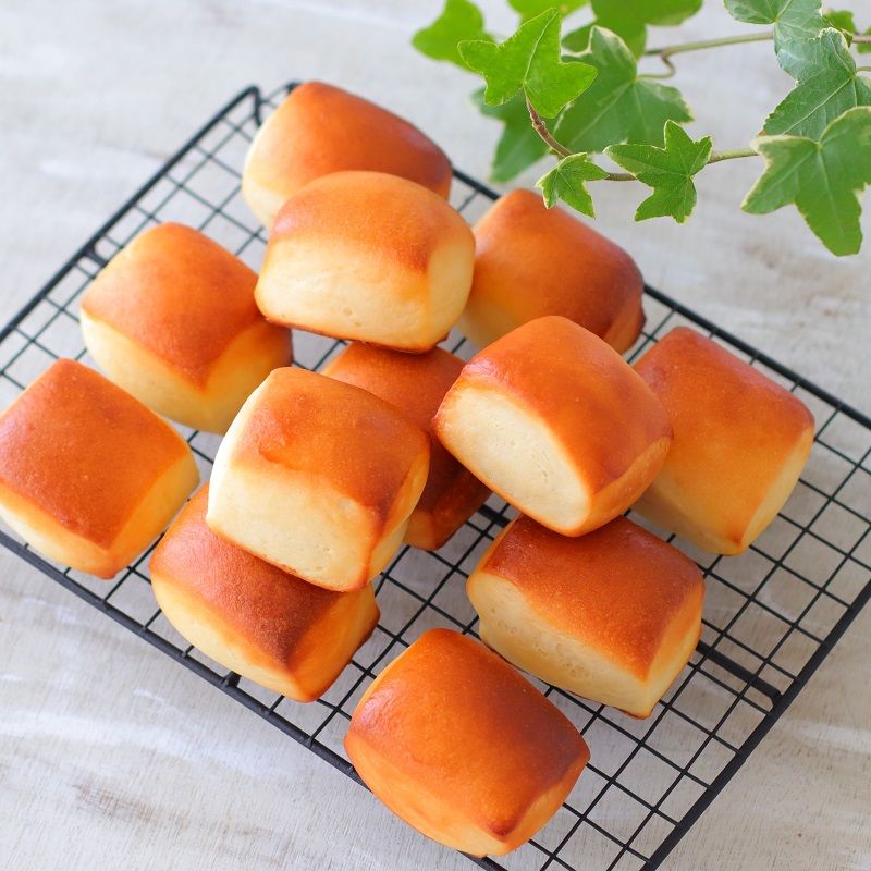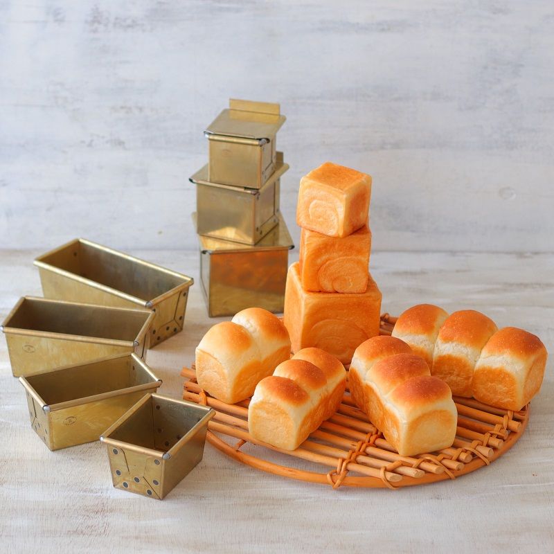 最近松永製作所さんにお試しさせていただいたこの可愛いパン型を使ってミニキューブ食パンを焼きました。このミニキューブは7.5㎝角のなんとも可愛いサイズのいわゆる角食パン。こんな可愛いサイズが食卓に上ったら嬉しくないですか?でも型に入れて焼くパンでみなさんが嫌だなぁ~って思うことが1つあると思うんです。それは『空焼き』、そう、パン型の下準備で型だけ焼いて、油脂塗ってまた焼いてという作業。空焼きすると部屋が油臭くて嫌なんですよね~。でもこのは空焼きがいらない!!!これ最高に嬉しい!届いてすぐ焼けるって最高です。cottaさんにシリーズで入荷されたのがこのラインナップ。左からミニ食パン型8㎝、10㎝、12㎝、14㎝キューブ食パン7.5㎝、6㎝、5㎝と全部で7種の食パン型。これ全て熱伝導の良いブリキにシリコンコーティングが施されているので型離れ、耐久性も抜群するりと出てきて期待を裏切らない型なんです。肌荒れ感の全くない焼き上がりは型ならでは。そんなミニキューブ型用にレシピを作りました。↓シンプルミニキューブ食パン 生地量とかに悩む方もいらっしゃると思いますがこれならばっちり焼けます。可愛く焼けたらシンプルにラッピングしてプレゼント。この型はパンだけじゃなくてパウンドケーキも焼けるのでその話はまた今度。今日のお菓子ブログは「人生初の割れないスフレチーズケーキが焼けた(泣)」を書いているのでよかったらご覧ください^^Happy Delicious Bakery にご訪問ありがとうございます。ブログランキングに参加しています。よかったらポチっと応援してくださ~い♪↓ cottaオフィシャルパートナーとして活動中です。↓レシピブログさんのパンの連載更新しています。↓私の姉妹お菓子ブログ♪↓インスタグラムはこちら↓