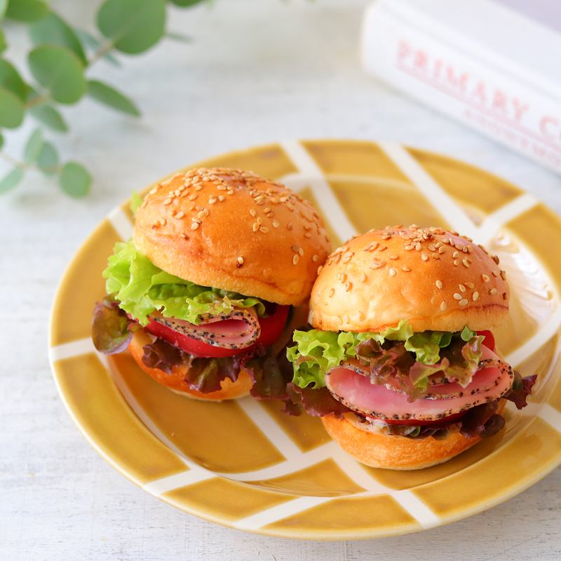粒カスタードとマヨをたっぷり塗って、レタスとトマトとペッパーハムだけ。