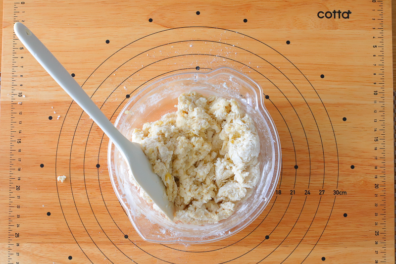 水分を加えるなら台にこすりつけてバターを入れる前までです。