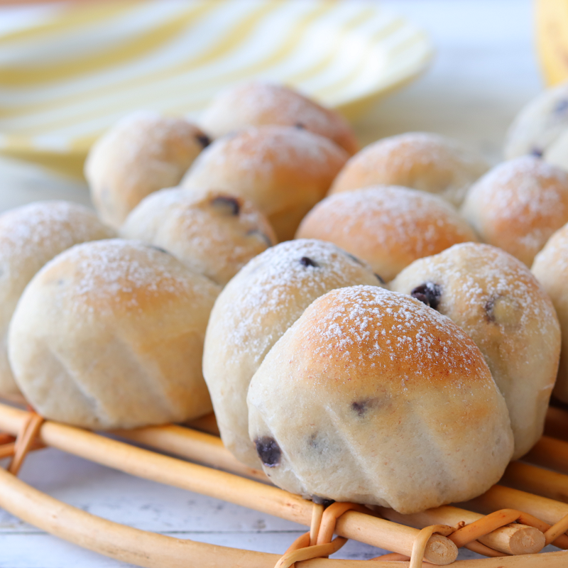 バナナの入るパン生地なのでふわっともちっとが共存するようなパンです。