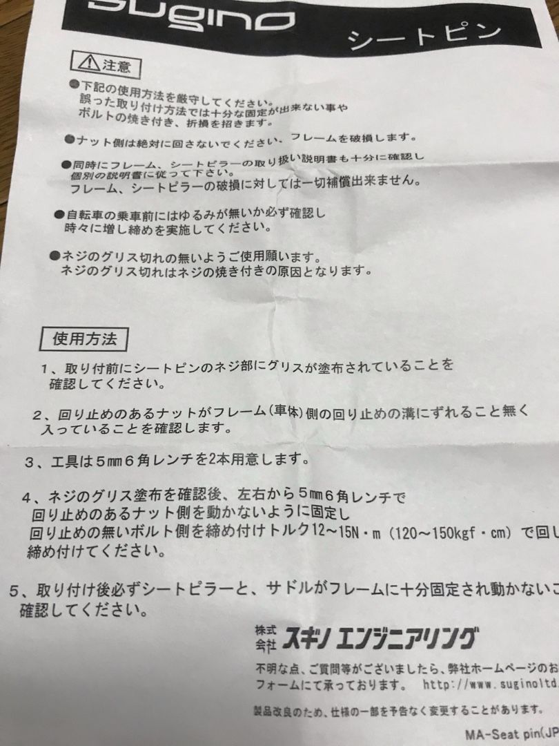 そのうち、どこかでカンパ製のシートピンが見つかれば交換しようと思っていましたが、これで十分です。