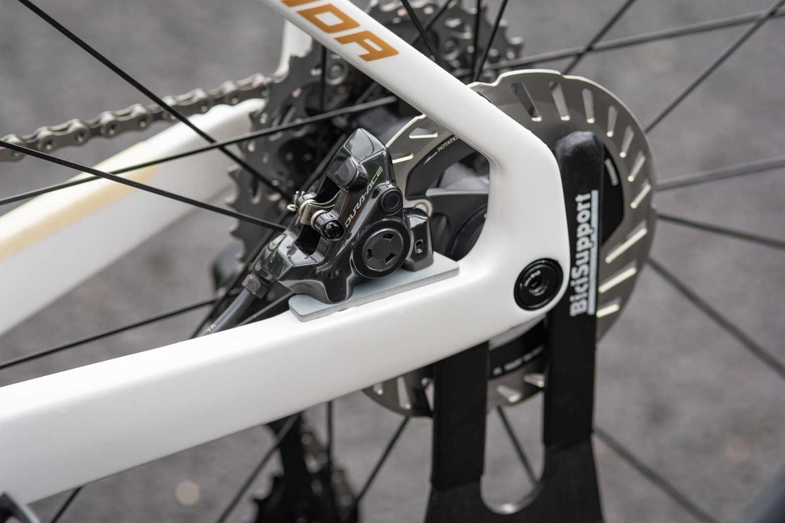 メリダのロードバイクは、ディスククーラーが付属していて、それを外すとキャリパーの位置が正しい位置になりません。