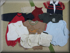 ピースケの持ち物について、私は新品にこだわりません。『こんなの要る?』「うん♪」ほぼ即答ですそんなわけでお古が全ーーーっく気にならないのでお下がり市に行ってきました。駐車場の混雑でいきなり戦意喪失狙った商品の前に陣取るママさんたちを見て、さらに戦意喪失「なんか適当にとってきて~。二人見ながらここら辺の(商品)だけでいいや。。」と友達に戦いを任せて一線を退いてしまいましたでも、これだけゲットしました~最初に狙ったのが、右下の水色の肌着。半そでだと思ってたのに、長袖でちょっと残念。次に左上の二着。意外と生地がやわらかくて嬉しい誤算あと3着は友達がとってくれたものです。布オムツは暇になったときにぷらぷら見に行ってゲット。ウールだし、ベルトも細くてなかなか使いやすいのです。最後の最後にベストが残ってたからゲット。翌日たまたま行った西○屋に同じ商品があったのは内緒。急に気温が下がったのでヘビロテ中。これらすべて、無料でした
