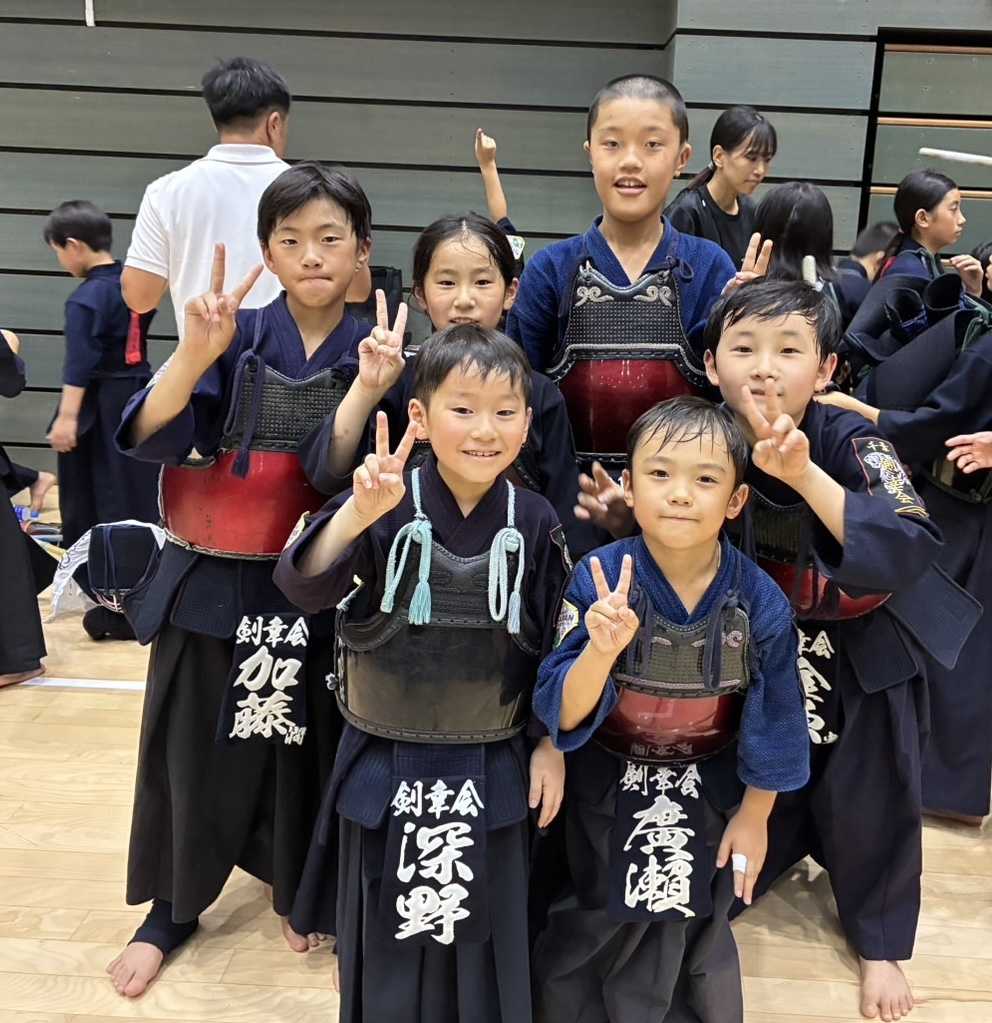 貴之は、富士ゼロックスの梅ヶ谷選手との一戦でした小学生達は、午前中は私、午後は愛ちゃん監督の元、素晴らしかったですね。特に夏休みの成果が低学年の6人に見られて、急成長ぶりを猛アピールしました。試合内容がガラリと変わり技の冴えやスピード感、2の技3の技の繋ぎが車の自動クラッチのようになってきました😊 うそ。。そこまではなってないね(笑)ただ、雄武南さんには一番の完敗でしたね。何故か簡単に引き出されて浮いてしまってました。うちより、さらに努力してるのが伝わってきてました🤔再来週、もう一回、茨城県龍ヶ崎の練習試合に参加を予定してますが、そのあとは錬成会ではなく、大会本番シーズンに突入します。市民大会のあとは、関東レベルの主要大会に順番にエントリーしてます🤗夏休みの兀々は、出てきました^_^私自身は急成長ぶりが観れて楽しかったです🤗ありがとう🙇 優太達の高松剣道コース日・月と決勝を同門対決で制し、三年生チーム、新チームの完全攻撃型剣道をちょくちょく見ながら、勉強してました。貴之が、昨日、半年ぶりに大会復帰しましたので、優太ももうちょいしたら、準備が始まると思います集合写真を総監督から頂いているので、アップしておきますね㊗️ 流山市錬成会の最後に子供達の元立やるでしょ。高島平の子が私の列に居たんだけど、左拳の竹刀軌道が素晴らしくて、、これはもう、とっても勉強になりました。受けながら今日一番の体験になりました🙇