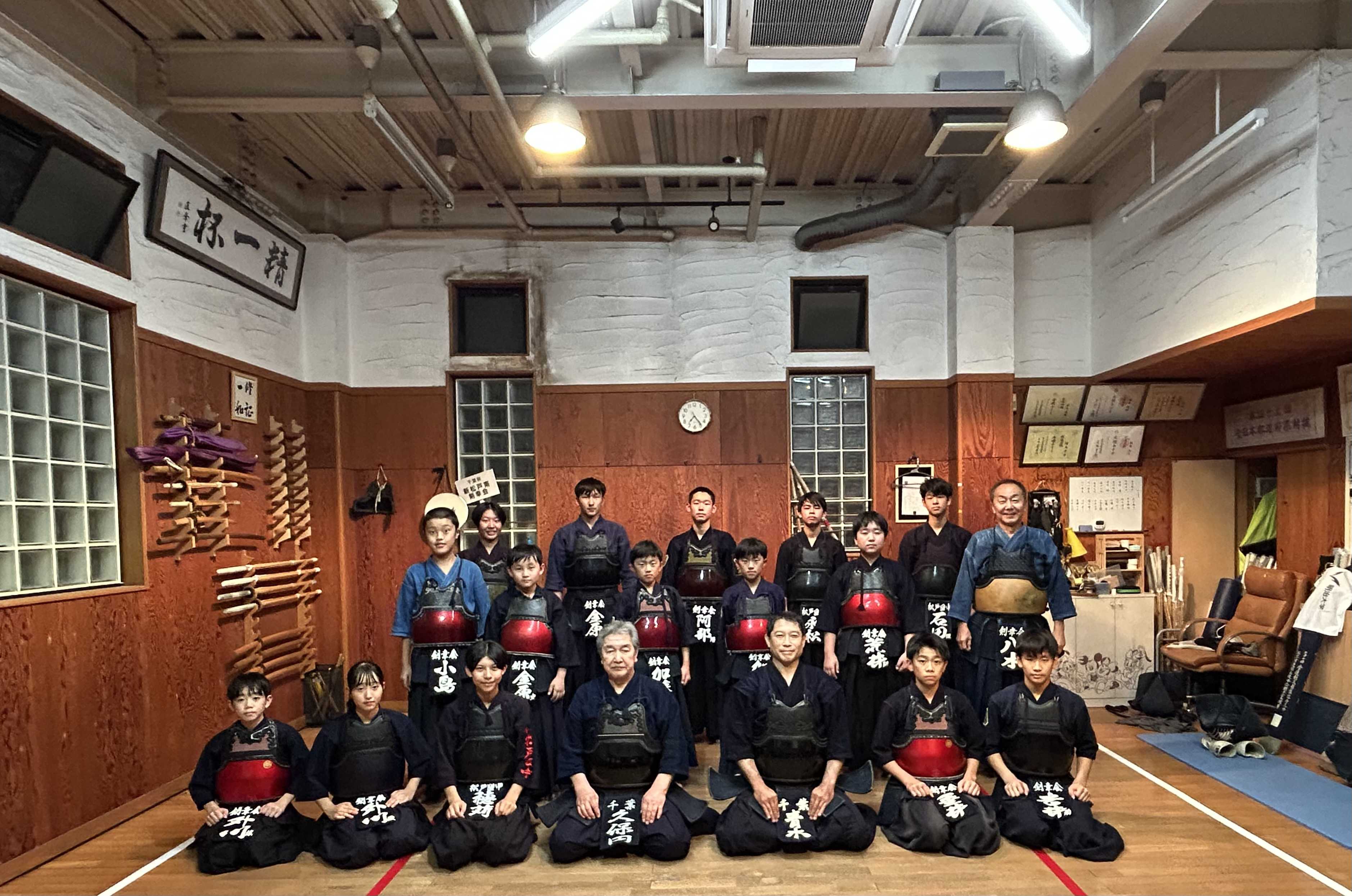 集合写真 三條かの記念館(三條先生の私設道場) 剣幸会道場の軽く10倍以上の広さはあります😊初日 2日目東京から2名の八段ゲストコーチ山形、福島、宮城県の八段の地元講師が6名うち、5名の先生方にお稽古頂きました😊模擬審査会、周り稽古、基本等、濃い稽古会で、稽古での気付きと、個別の指導も頂き、よい2日間でした🫡原田先生からの指導は素振り 一拍子、左足の引きつけ、戻るときに気を抜かない 3本前進後退正面打ち×10 (月曜の権瓶先生のメニューにもありましたね)打込み 一足で届く間合い 切り返し、元太刀大事 最後の面打ちの前に息を繋げる、残心まで 決め技は打込みでつくる(森島先生)実戦に繋がる打込み つくる、攻める、溜める、捨てる、繋ぐー つくる、攻める、溜める、捨てる、繋ぐ(繰り返し)このあと、米沢から新松戸に帰宅して稽古予定ですあと、予定をもうひとつ㊗️次の木曜日、先日八段審査に合格された青木先生が、ご挨拶と稽古に剣幸会来館予定です🙇話は戻して原田先生の基本指導の様子蹲踞は遠間、抜いてから蹲踞ではないという指摘 攻める、溜める、 捨て切る 私は写真班なんで、きつい基本稽古はしなかった😊倉澤先生の袴と面で参加^_^気がつく講師の先生が居らして、倉澤なに先生の袴?って。