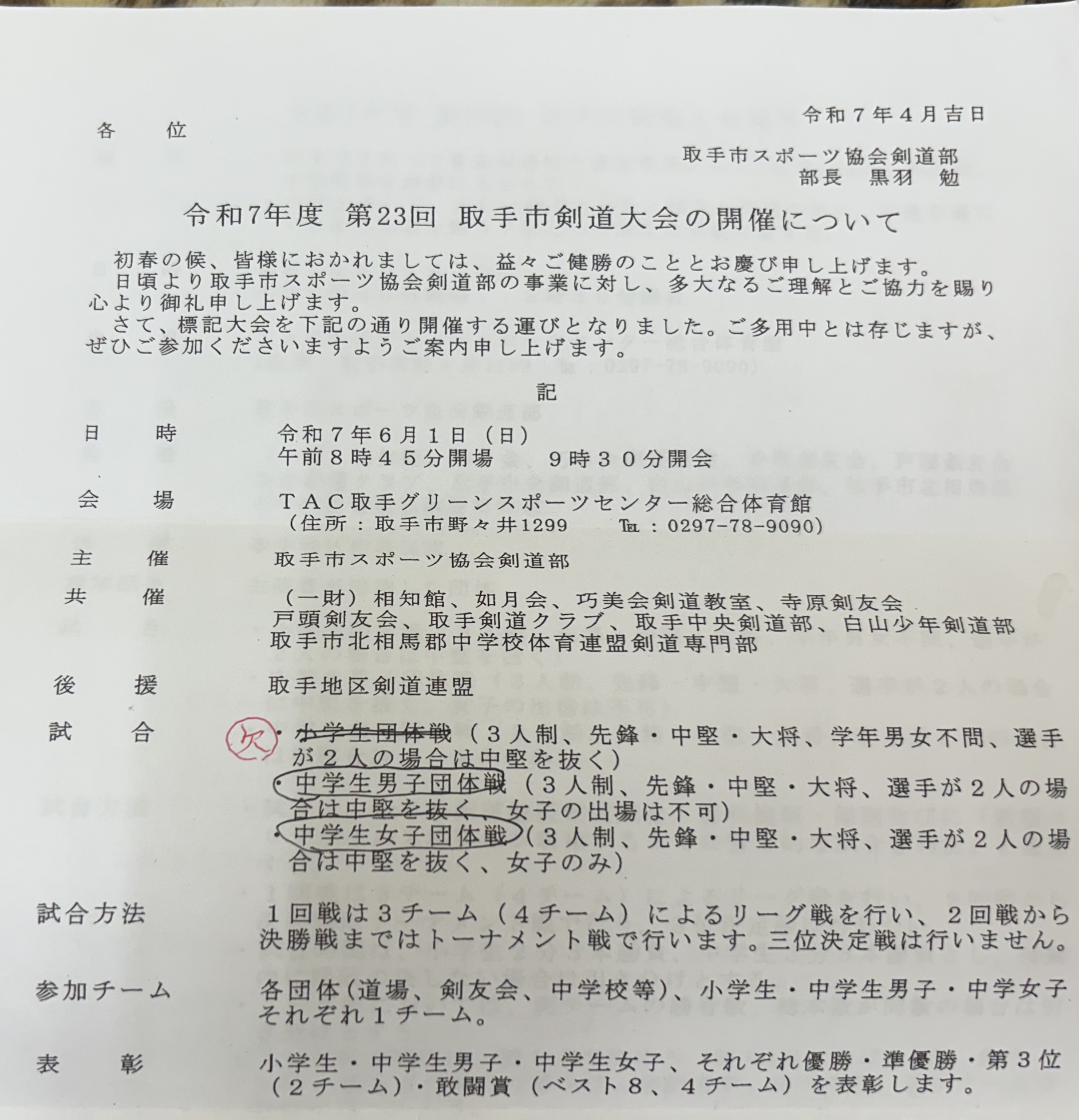 詳細は、市錬成大会が終えたあと、選考会出場資格車者が出揃った時点で、選手・審判を選任して、タイムテーブルの詳細を決めたあと、決めたいと思います。