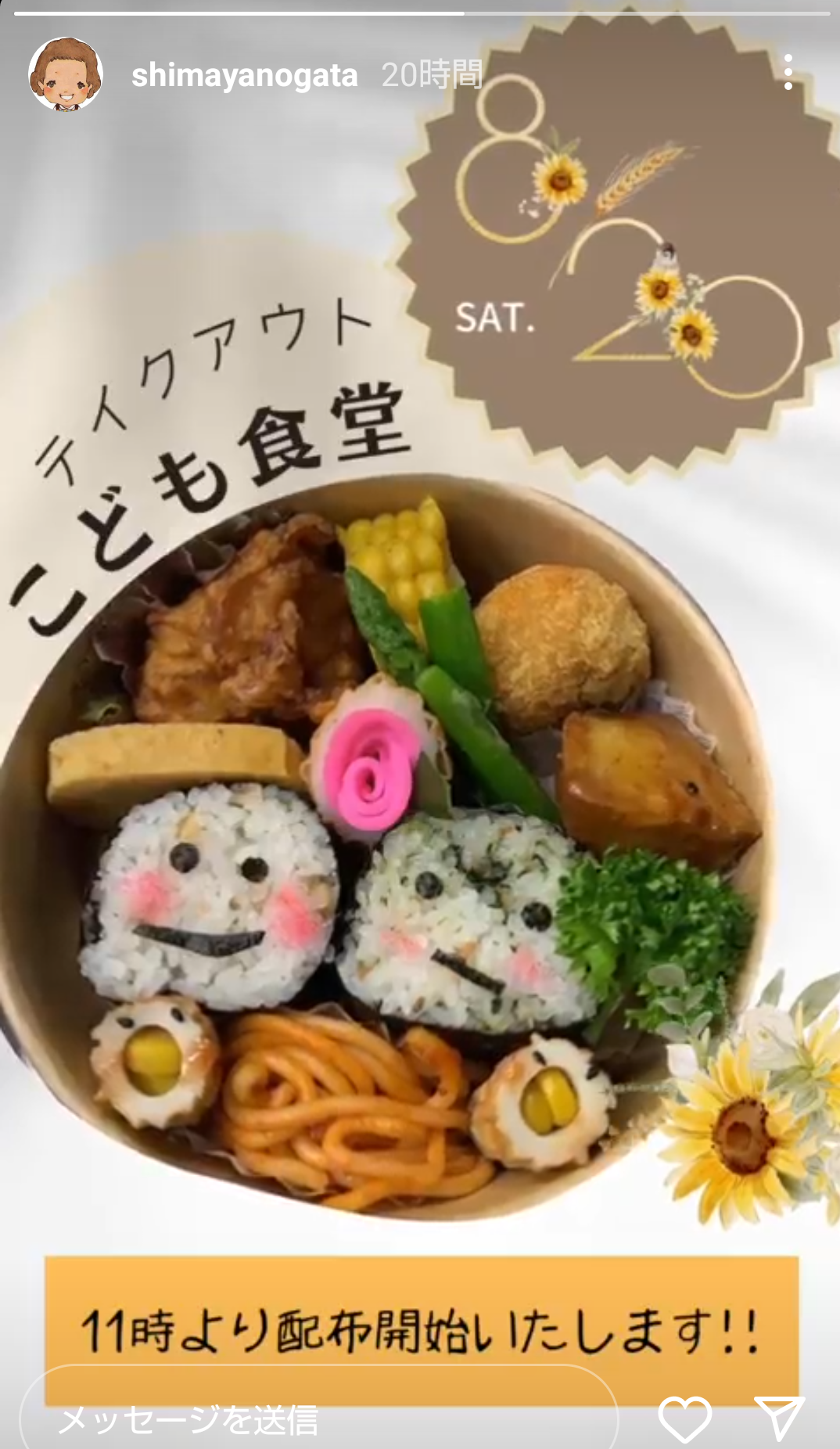 直方市の仕出し食品・仕出し弁当製造企業の「有限会社しまや」さまによる、テイクアウト形式の【子ども食堂】の情報です同社のお電話番号は、0120-017-408 ですお問い合わせは直に同社になされて下さいませ。同社のホームページ はここをクリック同社のFaceBookはここをクリック!次回は、9/17土曜日との事です詳細は、下記の画像をご覧下さいまし。同社のインスタグラム情報からです:★次回は、「9/17」という事ですね、皆さま、ご参考下さいませ:~~~これは、情報の提供のためです。ご承知おき下さいませ。末次通訳事務所の慈善事業活動部(浦田子ども食堂)