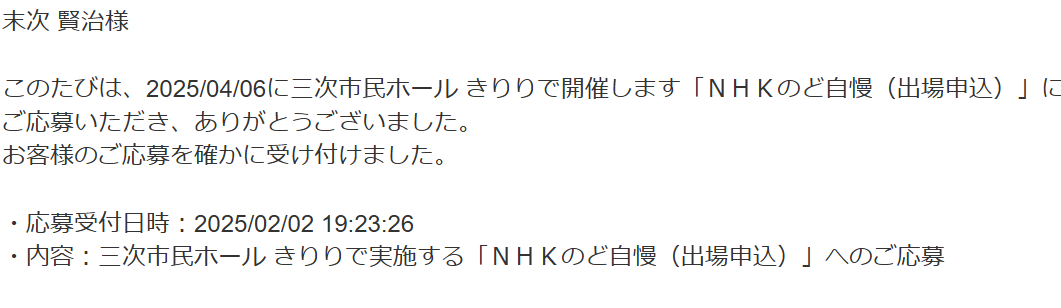 今週末に 大分県中津で開催されますNHKのど自慢には