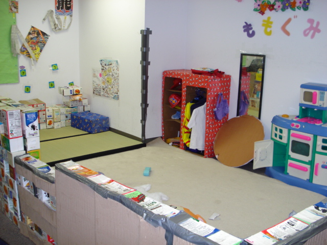 すいか幼稚園オレンジ校は少人数で運営していますが、工夫一杯のクラスです。★たたみのコーナーです。仕切りは牛乳パックで作りました。↓↓アメリカ生活を体験したい方は此方をクリック↓↓お問い合わせは国際フリーダイアルで050-5539-3786