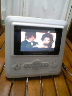 今日も又仕事が終わって“道草=寄り道”タイム電気屋さんを覘いてみたぁ~ヤッタ~ほしいものが“10名様限定”でめっちゃ安く販売されてて最後の1個をゲットしました~『3.6型液晶モニター付DVDプレーヤー』おっちょこちょいな私は、パソコンを持ち歩くのは非常にコワイので・・・生徒さんに、“婚礼の映像”を見せてあげるのにすごくほしかったのでした~今宵はお世話になってます映像会社の「DELTATT」さんから頂いた 婚礼演出ビデオサンプルの観賞に浸りま~す